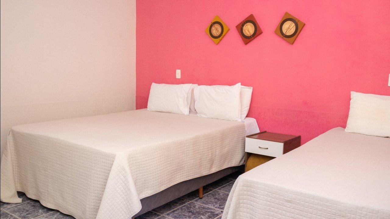 O hotel conta com seis blocos de suítes e uma casa com quatro quartos, oferecendo acomodações acolhedoras e variadas, perfeitas para casais, famílias e grupos de amigos.